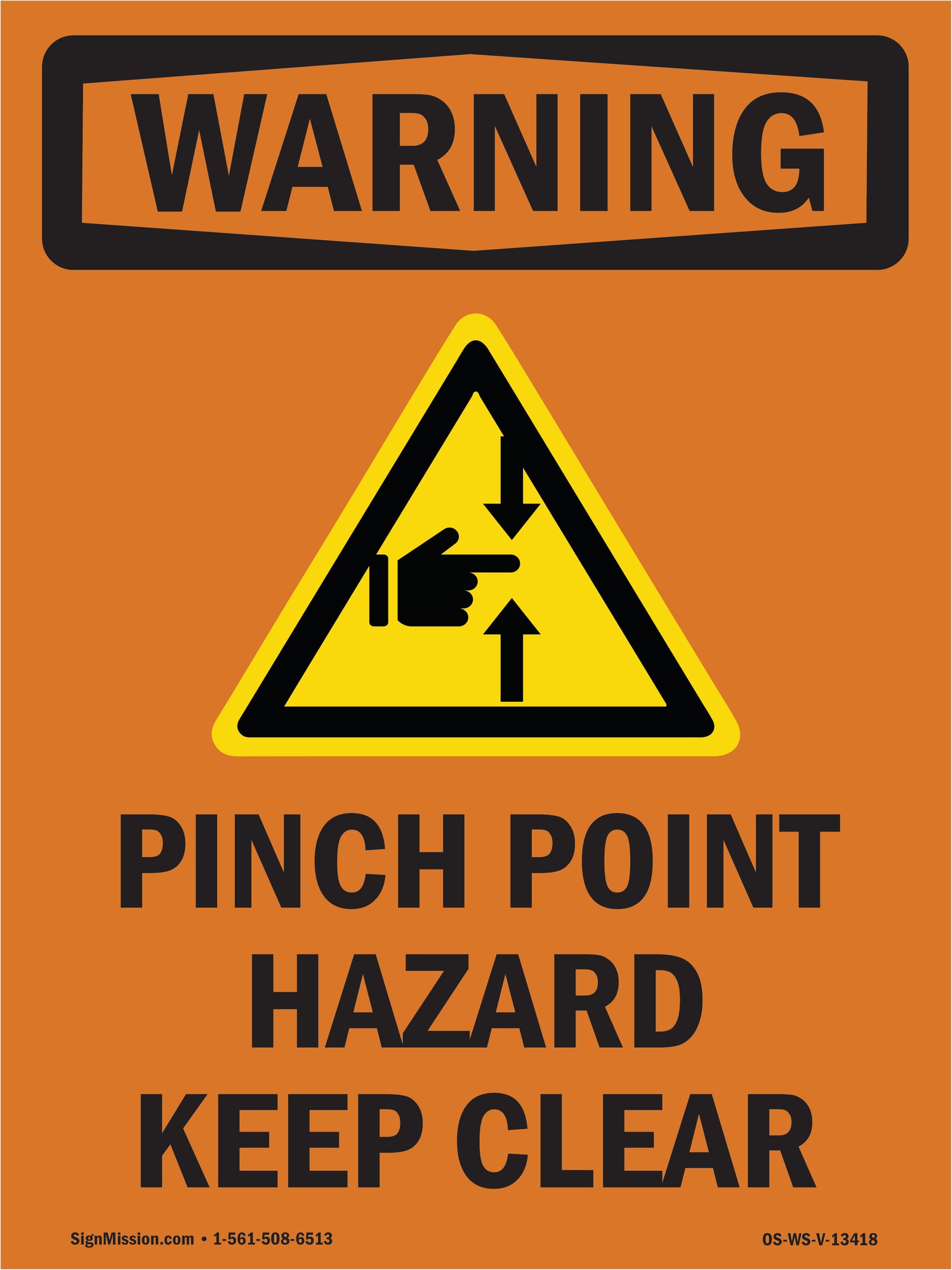 Pinch Point Hazard Keep Clear With Symbol