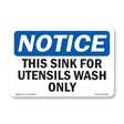 NOTICE This Sink For Utensil Wash Only