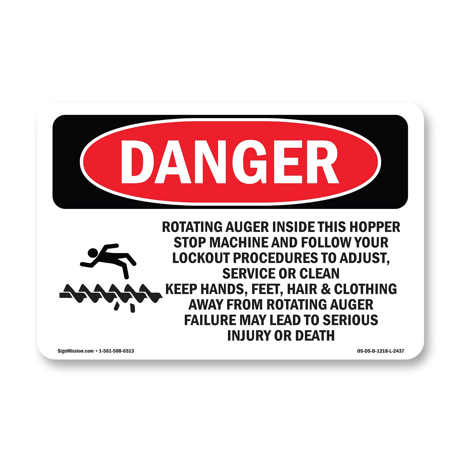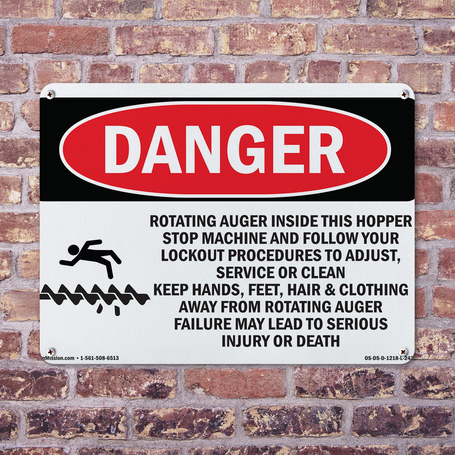 A working OSHA/ANSI safety sign that reads clean at distance and holds up outside. Header colors and signal words follow Z535 standards. High contrast. No glare.