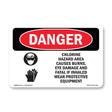 A working OSHA/ANSI safety sign that reads clean at distance and holds up outside. Header colors and signal words follow Z535 standards. High contrast. No glare.