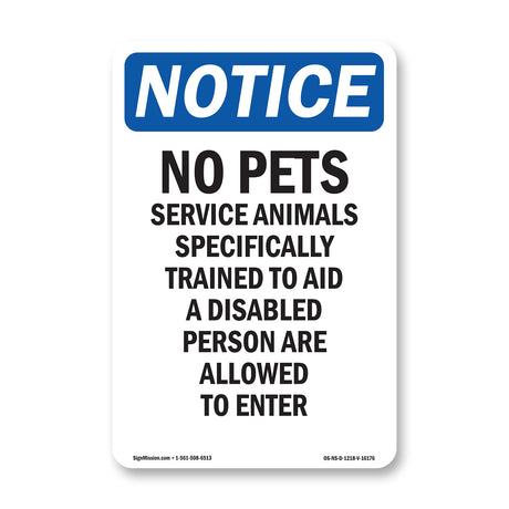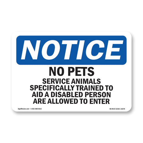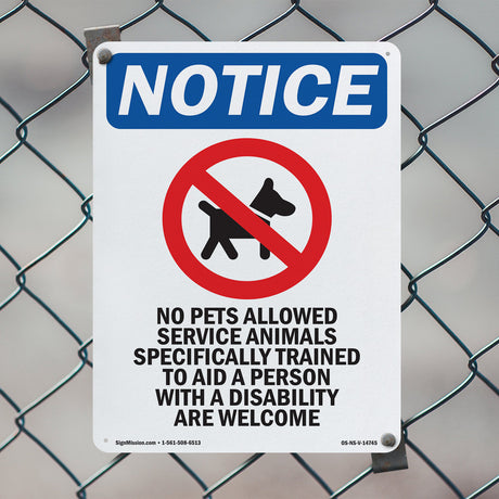 NOTICE No Pets Service Animals Allowed