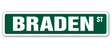 BRADEN Street Sign