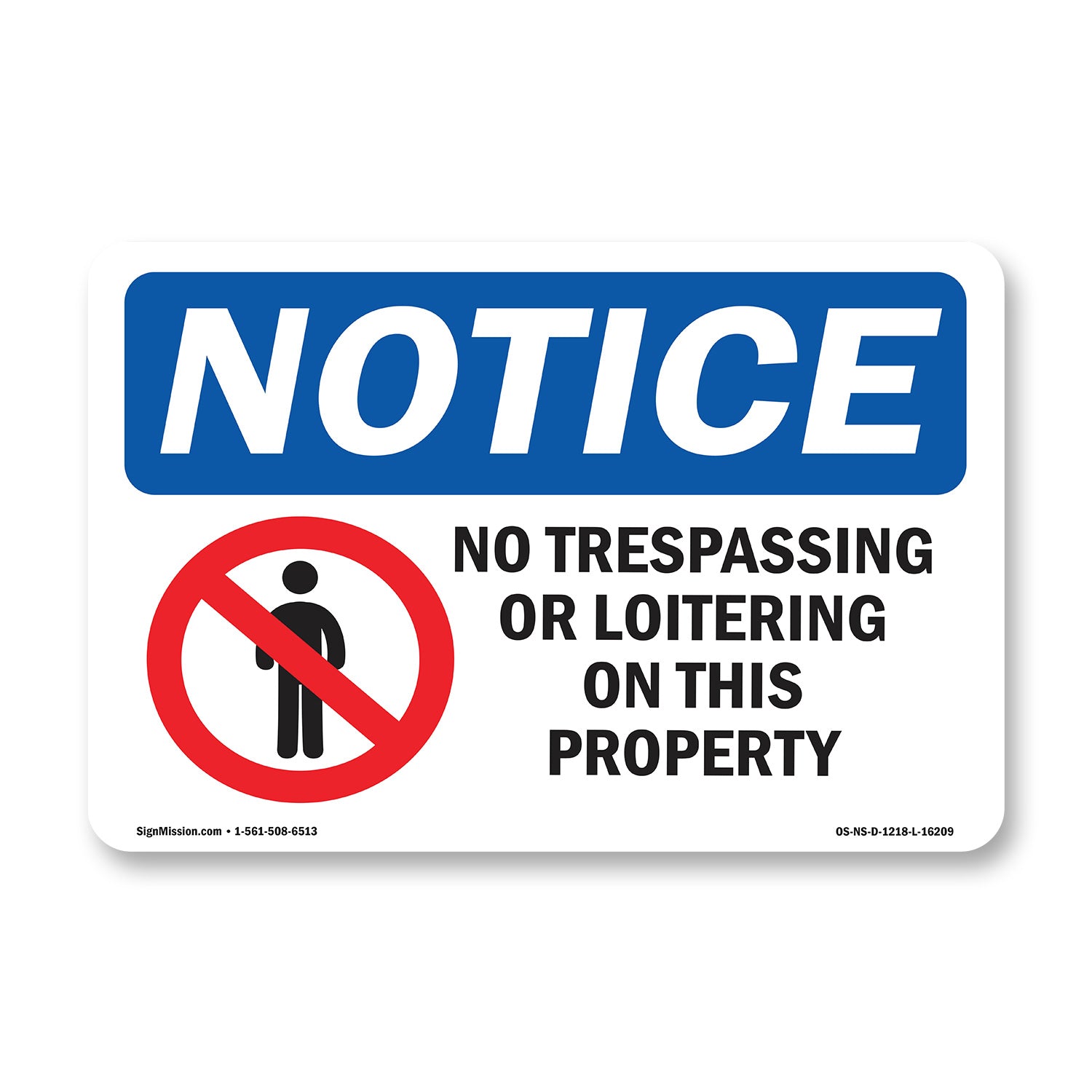 NOTICE No Trespassing Or Loitering On This Property