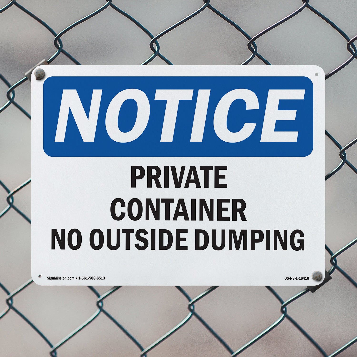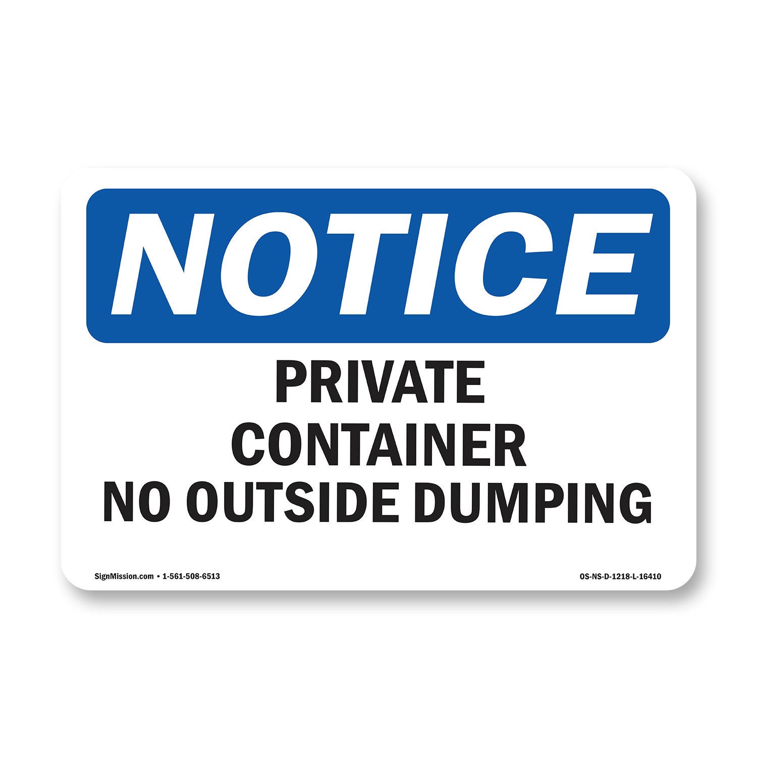 NOTICE Private Container No Outside Dumping