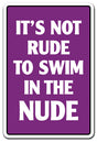 IT'S NOT RUDE TO SWIM IN THE NUDE Sign