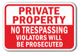 Private Property No Trespassing Violators Will Be Prosecuted