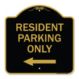 Reserved Parking Sign Resident Parking Only (With Left Arrow) - 18" x 18" Designer Aluminum Sign / Black & Gold is backordered and will ship as soon as it is back in stock.