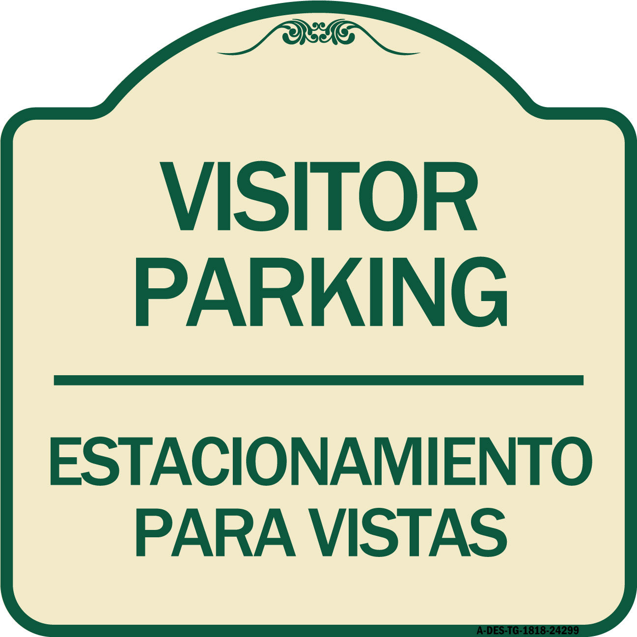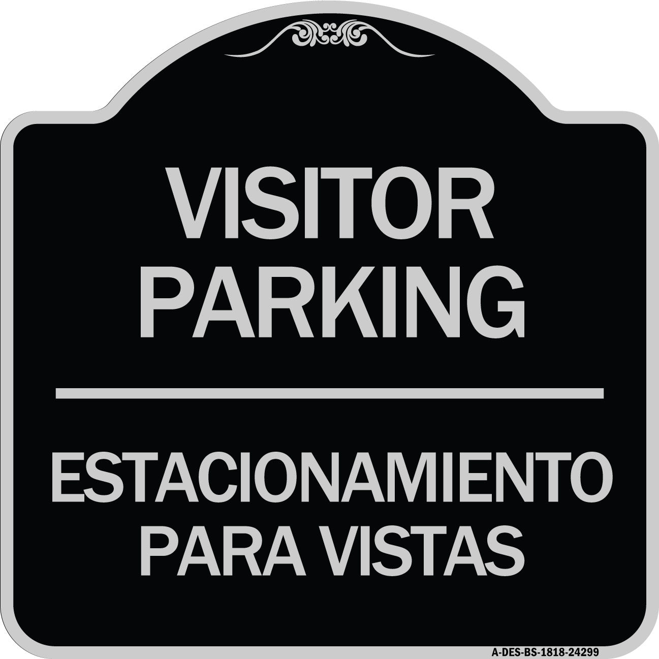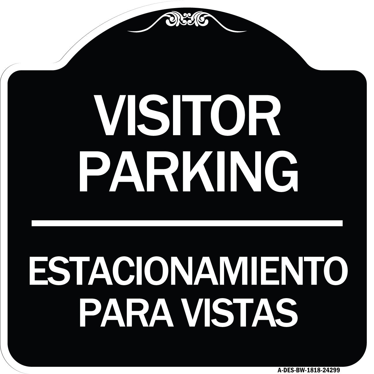Bilingual Reserved Parking Sign Visitor Parking Estacionamiento Para Visitas - 18" x 18" Designer Aluminum Sign / Black & Gold is backordered and will ship as soon as it is back in stock.