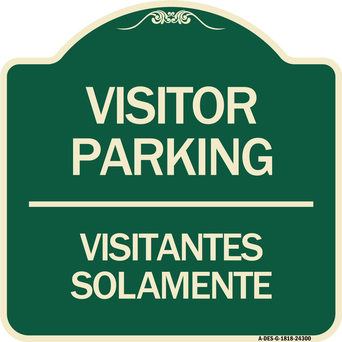 Bilingual Reserved Parking Sign Visitor Parking Visitantes Solamente - 18" x 18" Designer Aluminum Sign / Black & Gold is backordered and will ship as soon as it is back in stock.