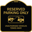Resident Parking Only Unauthorized Vehicles Towed Away With Graphic - 18" x 18" Designer Aluminum Sign / Black & Gold is backordered and will ship as soon as it is back in stock.