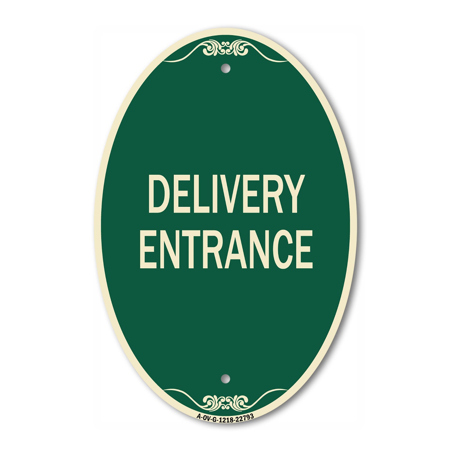 This Green & Tan 12" x 18" oval sign is manufactured from heavy-gauge, commercial-grade aluminum and built to withstand the toughest outdoor conditions. Designed with laser-cut mounting holes for clean installation and a sleek, architectural appearance.