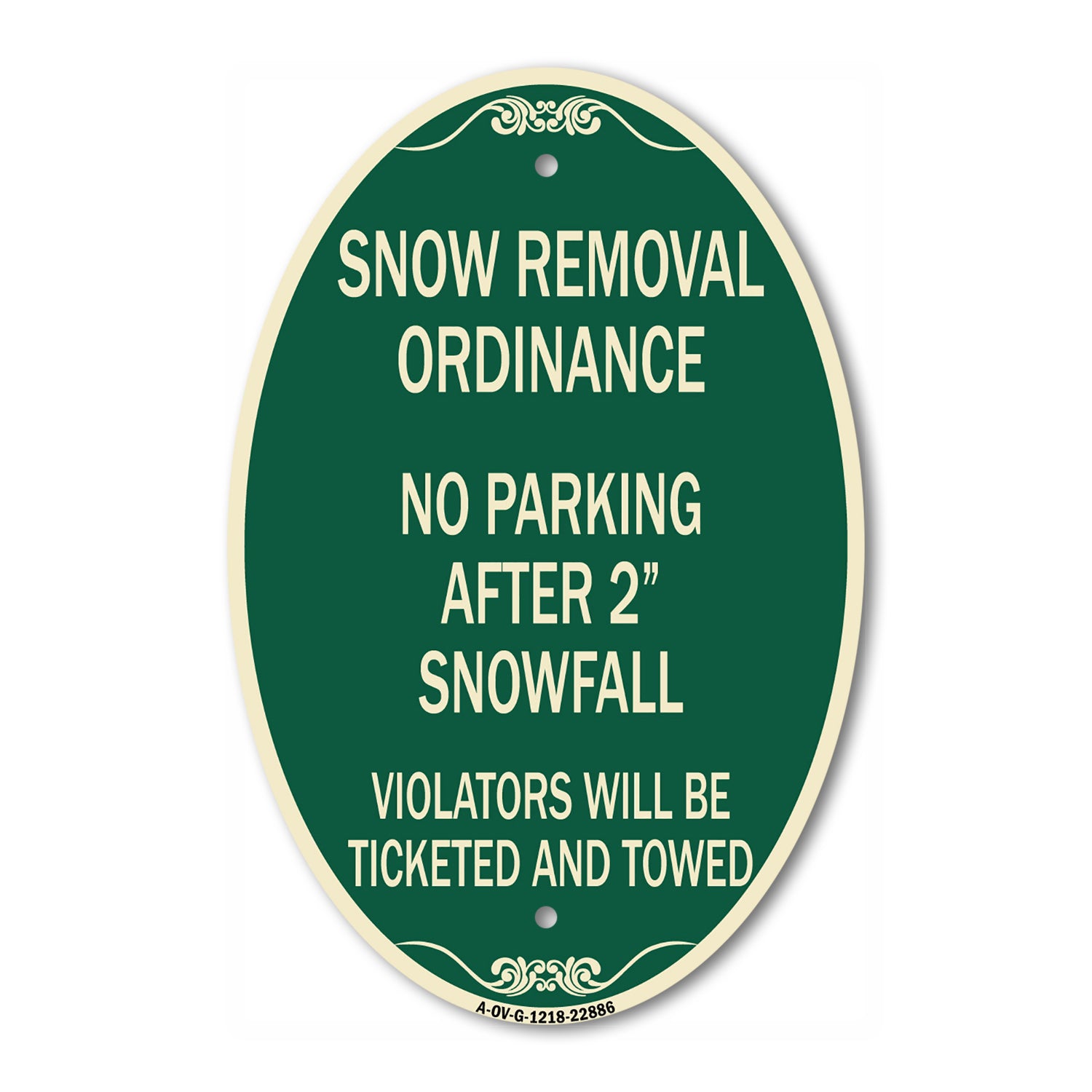 This Green & Tan 12" x 18" oval sign is manufactured from heavy-gauge, commercial-grade aluminum and built to withstand the toughest outdoor conditions. Designed with laser-cut mounting holes for clean installation and a sleek, architectural appearance.