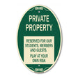 Private Property - Reserved for Our Students Members and Guests - Play at Your Own Risk