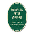 No Parking After Snowfall Vehicles May Be Towed or Plowed-In