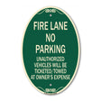 Fire Lane No Parking Unauthorized Vehicles Will Be Ticketed Towed at Owners Expense - 12" X 18" Oval is backordered and will ship as soon as it is back in stock.
