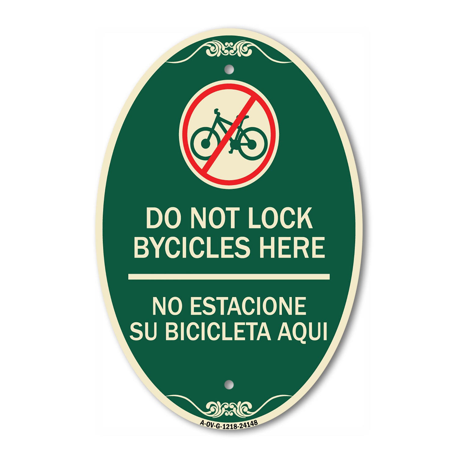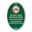 Do Not Lock Bicycles Here - No Estacione Su Bicicleta Aqui (With No Bicycle Graphic) - 12" X 18" Oval is backordered and will ship as soon as it is back in stock.