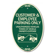 Customer and Employee Parking Only Unauthorized Vehicles Towed at Owner Expense with Graphic