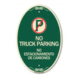 Bilingual No Parking Sign No Truck Parking No Estacionamiento De Camiones (With No Parking Symbol) - 12" X 18" Oval is backordered and will ship as soon as it is back in stock.