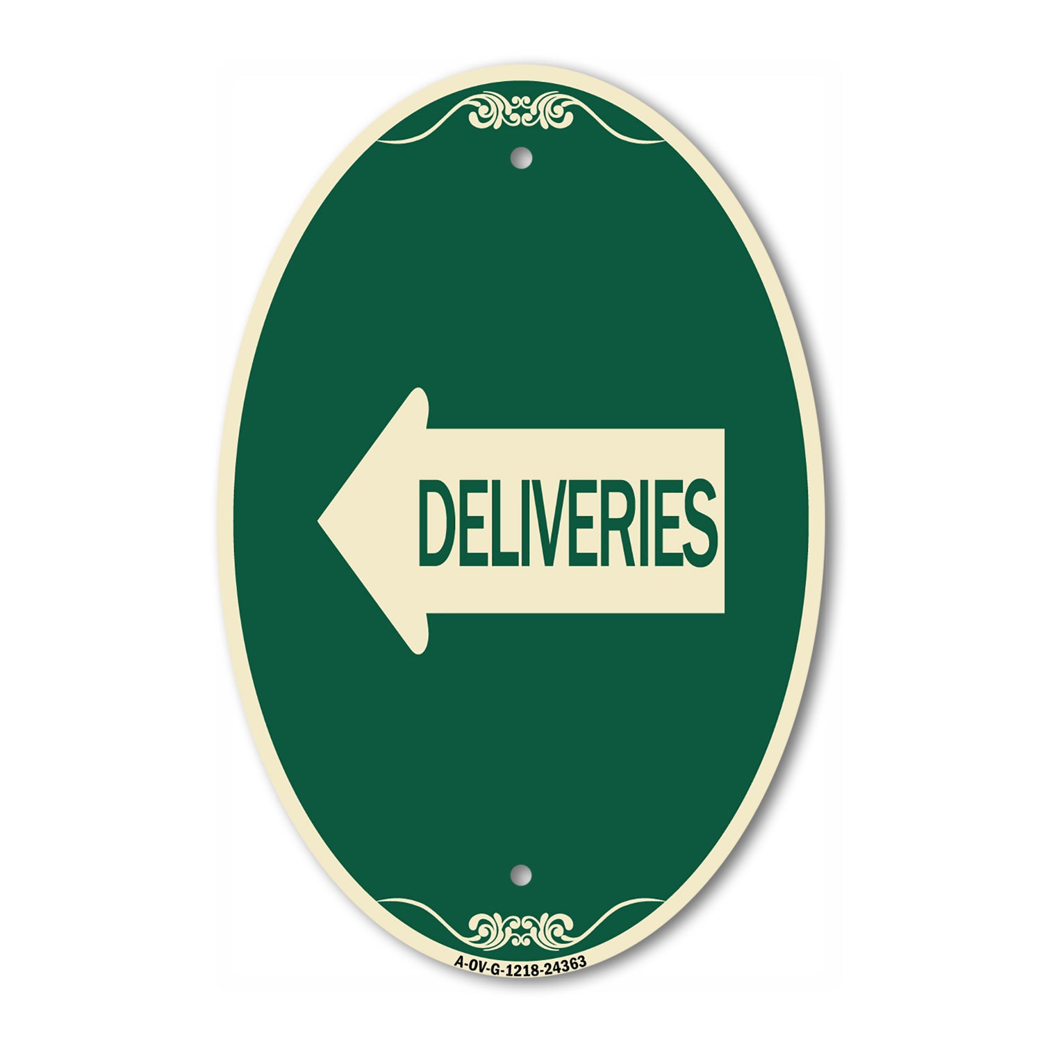 This Green & Tan 12" x 18" oval sign is manufactured from heavy-gauge, commercial-grade aluminum and built to withstand the toughest outdoor conditions. Designed with laser-cut mounting holes for clean installation and a sleek, architectural appearance.