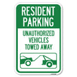 Tow Away Sign Resident Parking - Unauthorized Vehicles Towed Away (With Car Tow Graphic)