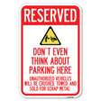Reserved, Do Not Think About Parking Here, Unauthorized Vehicles Crushed, Towed and Sold for Scrap with Graphic