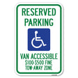 Reserved Parking, Van Accessible, $100-$500 Fine, Tow Away Zone (With Graphic) - 12" x 18" Heavy Gauge Aluminum Sign is backordered and will ship as soon as it is back in stock.