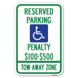 Reserved Parking, Penalty $100 to $500, Tow-Away Zone with Symbol