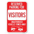 Reserved Parking for Visitors Unauthorized Vehicles Towed Away (With Tow Away Graphic) - 12" x 18" Heavy Gauge Aluminum Sign is backordered and will ship as soon as it is back in stock.