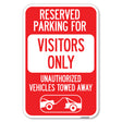 Reserved Parking for Visitors Only Unauthorized Vehicles Towed Away