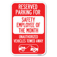 Reserved Parking for Safety Employee of the Month Unauthorized Vehicles Towed Away - 12" x 18" Heavy Gauge Aluminum Sign is backordered and will ship as soon as it is back in stock.