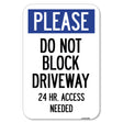 Please, Do Not Block Driveway, 24 Hour Access Needed
