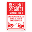 Parking Restriction Sign Resident or Guest Parking Only, Unauthorized Vehicles Towed at Owner Expense with Graphic