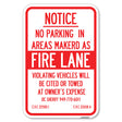 No Parking in Areas Marked as Fire Lane, CVC Section 22500.1 and 22658 A - 12" x 18" Heavy Gauge Aluminum Sign is backordered and will ship as soon as it is back in stock.