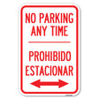 No Parking Anytime Prohibido Estacionar (With Bidirectional Arrow)