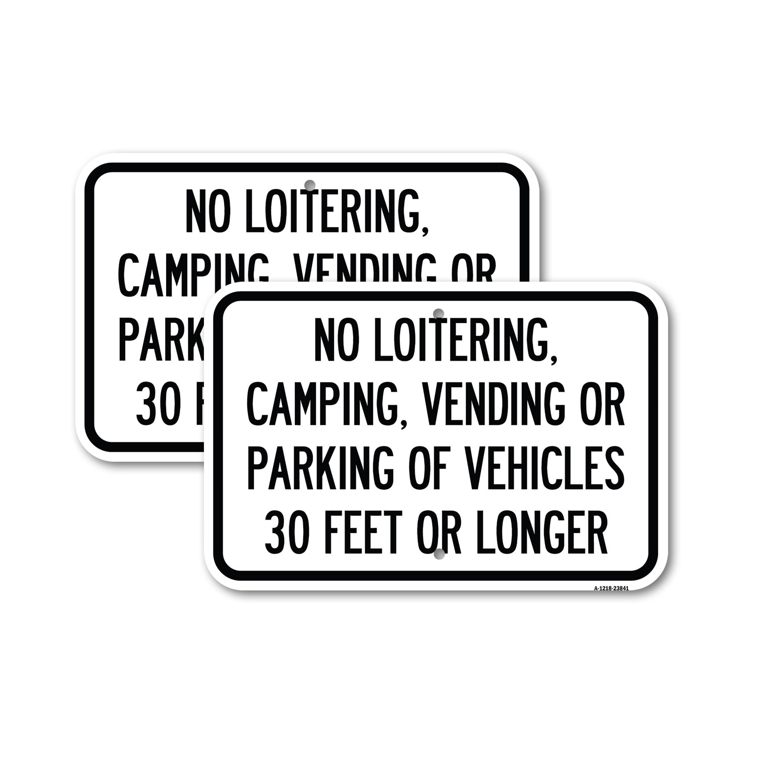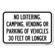 No Loitering, Camping, Vending or Parking of Vehicles 30 Feet or Longer - 12" x 18" Heavy Gauge Aluminum Sign is backordered and will ship as soon as it is back in stock.