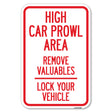 High Car Prowl Area Remove Valuables Lock Your Vehicle
