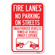 Fire Lanes, No Parking on Streets, Unauthorized Vehicles Towed at Owner Expense with Graphic - 12" x 18" Heavy Gauge Aluminum Sign is backordered and will ship as soon as it is back in stock.