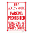 Fire Access Route, Vehicles Will Be Towed Away at Owner Expense