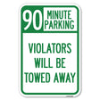 90 Minute Parking, Violators Will Be Towed Away