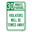 30 Minute Parking, Violators Will Be Towed Away