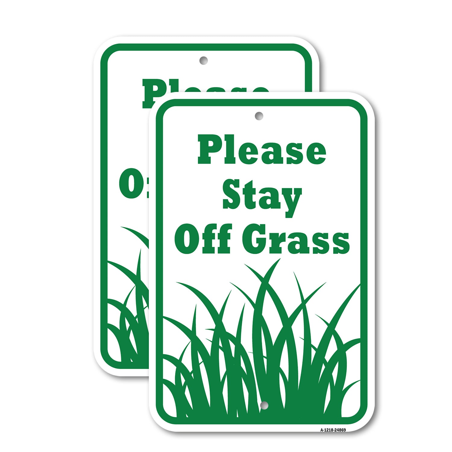 This is a heavy gauge aluminum sign designed for long-lasting outdoor use, available in two size options: 12" X 18" or 18" X 24". Customers have the option to select either one sign or a set of two. It is manufactured with rounded corners and has precut mounting holes for easy installation.