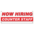 This Now Hiring Counter Staff Banner is a great way to advertise your business