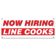 This Now Hiring Line Cooks Banner is a great way to advertise your business