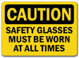 Caution Sign - Safety Glasses Must Be Worn At All Times