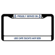 Proudly Served On USS CAPE DUCATO AKR 5051 License Plate Frame
