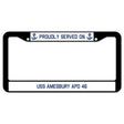 Proudly Served On USS AMESBURY APD 46 License Plate Frame