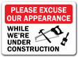 Construction Area Sign - Please Excuse Our Appearance 10"x14" OSHA Safety Sign