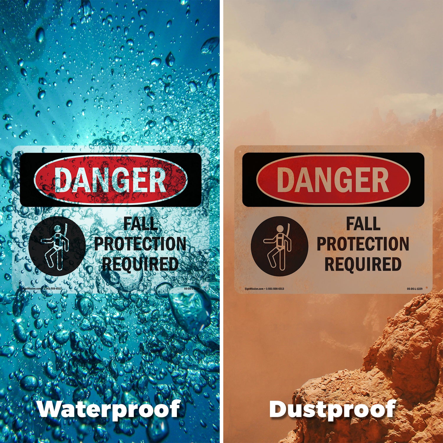 A working OSHA/ANSI safety sign that reads clean at distance and holds up outside. Header colors and signal words follow Z535 standards. High contrast. No glare.