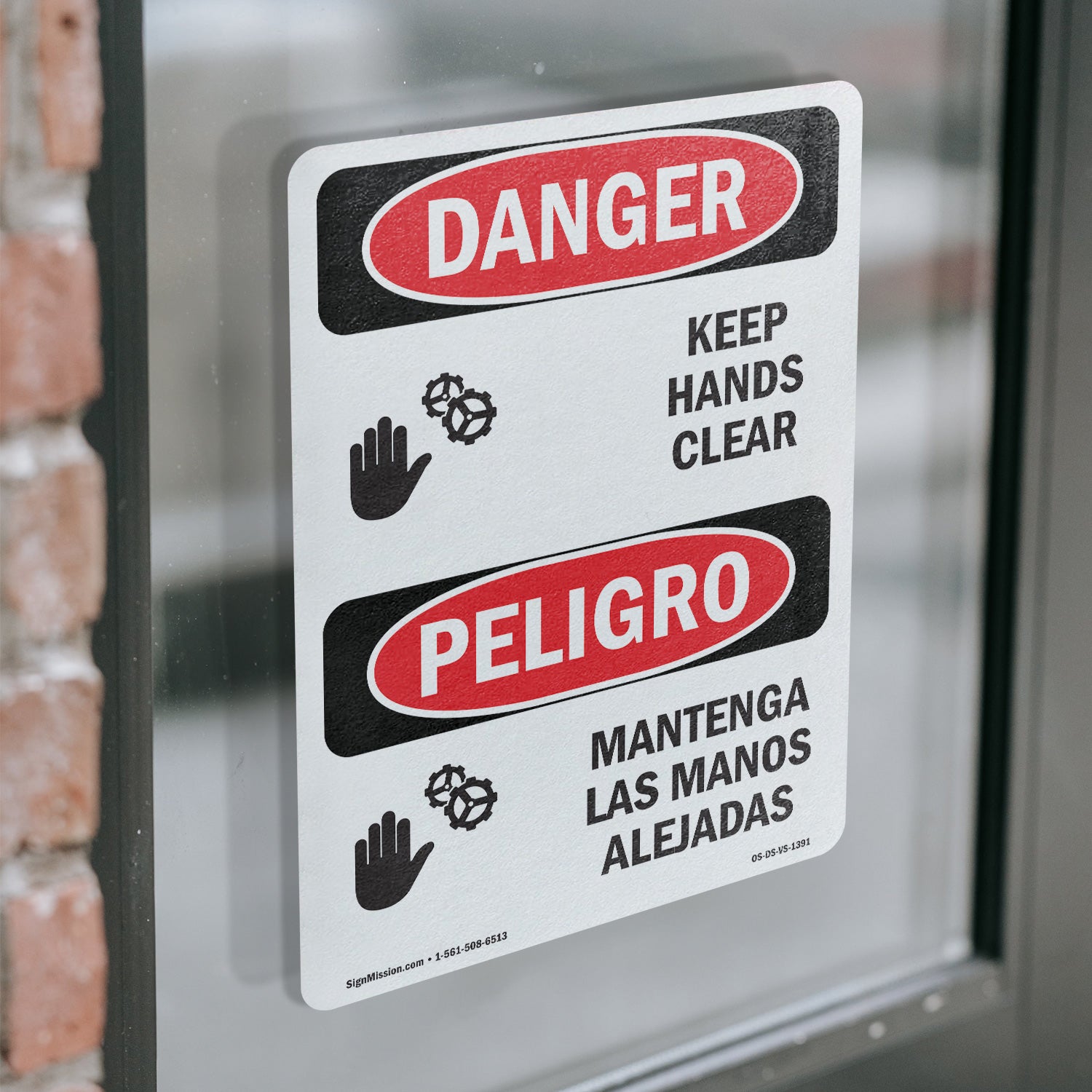 A working OSHA/ANSI safety sign that reads clean at distance and holds up outside. Header colors and signal words follow Z535 standards. High contrast. No glare.