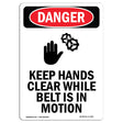 Keep Hands Clear While Belt Is In Motion